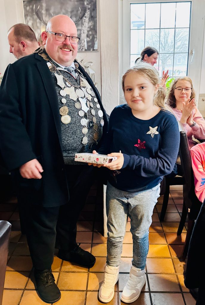14.11.2021 Nach der Kapelle und Kranzniederlegung wurden die Gewinner des diesjährigen Mal-Wettbewerbs gekürt. Unser König überreicht die Geschenke an die stolzen Künstler.